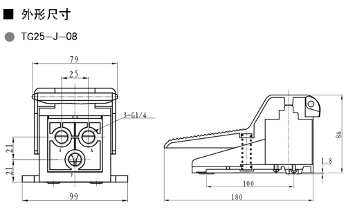TG25-J-08脚踏阀,stnc脚踏阀,二位五通脚踏阀