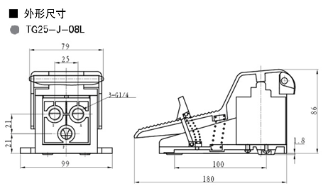用脚踩踏的控制阀,广泛应用于各种气动系统中,操作力小,解放双手,二位三通的R、P